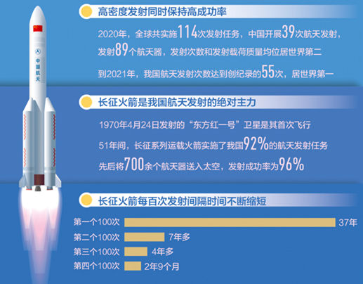 2021年12月30日零时43分,长征三号乙运载火箭成功将通信技术试验卫星九号送入预定轨道,为中国航天2021年发射任务画上了圆满句号。 据统计,2021年全年我国航天发射次数达到55次,位居世界第一。从中国空间站建设取得阶段性重大胜利,到“天问一号”拓展我国星际探索新旅程,在航天发射数量再次刷新历史纪录的这一年中,我国航天事业取得令人瞩目的成就,一批航天重大计划达成或逐步接近设定目标,更长远的探索计划则蓄势待发。