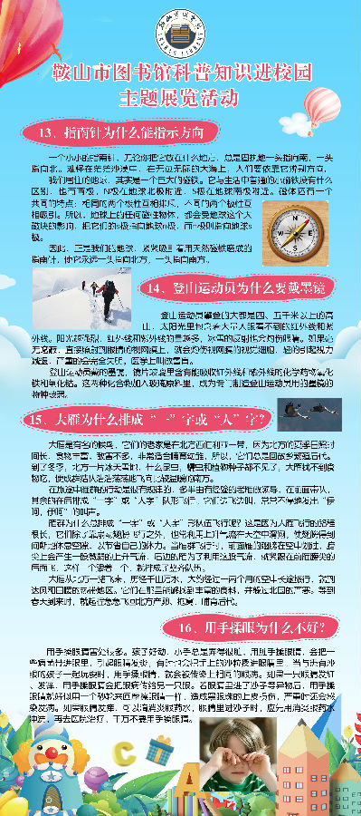 鞍山市图书馆科普知识进校园活动