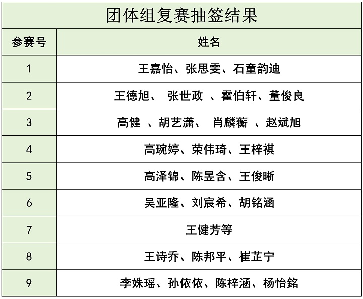 各组别复赛抽签结果将以图片的形式,附在通知最后。