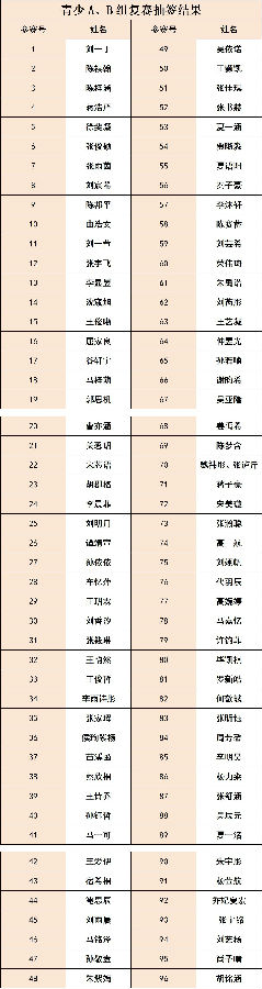 青少A、B组晋级选手为30人(组);