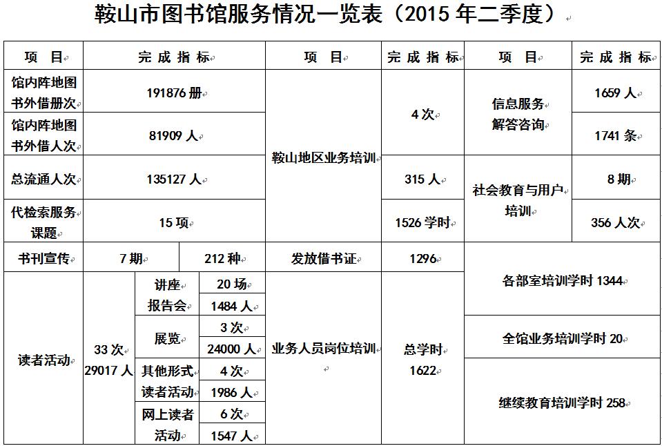 2015年第二季度服务数据