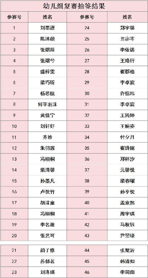三、复赛抽签结果