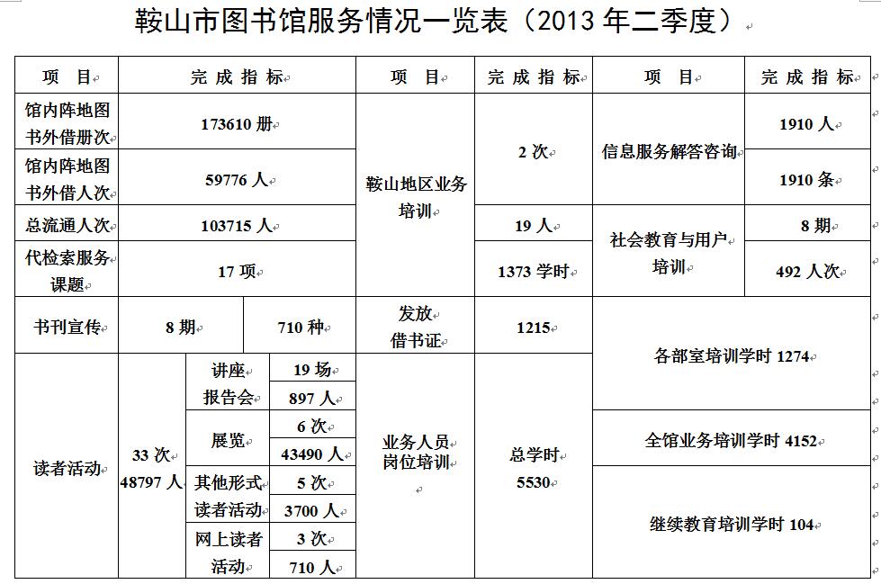 2013年第二季度服务数据