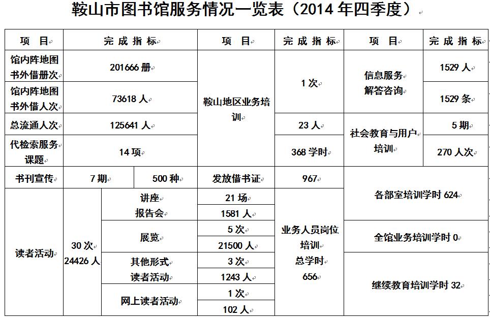 2014年第四季度服务数据